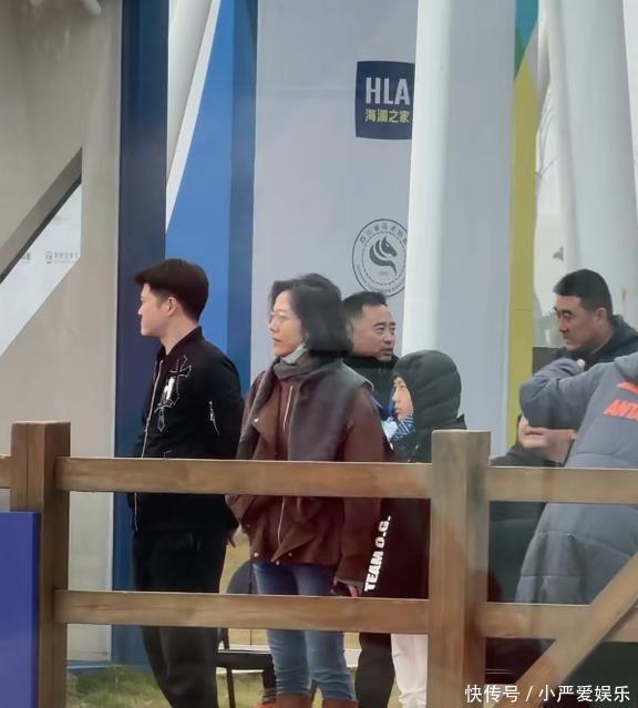 杨乐乐穿着棕色的皮衣,配上同色的长靴,打扮得特别酷,真的很时髦。虽然穿得挺抢眼,但杨乐乐看上去累得很。戴着眼镜,没化妆,头发有点乱,杨乐乐在一堆人中就像个操心的大妈,好普通啊,跟她视频里那个样子简直判若两人!